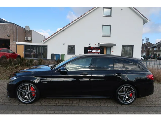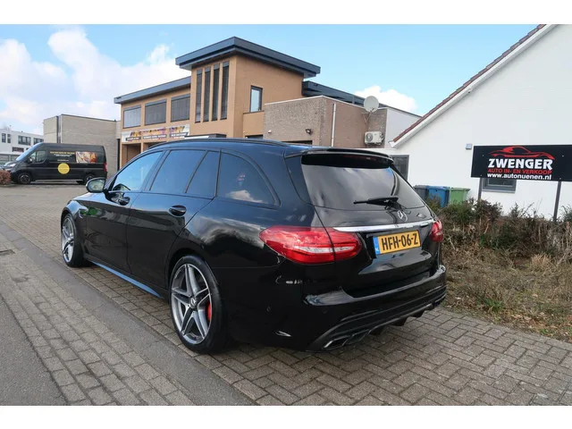 Mercedes C-klasse Estate AMG 63 S 510PK SCHAAL STOELEN|HEAD-UP|MEMORY|BURMESTER|SFEER VERLICHTING|1E EIGENAAR. Kenteken: HFH-06-Z; Merk: Mercedes; Model: C-klasse Estate; Tellerstand: 130080 KM; Carrosserievorm: Station; Aantal deuren: 5; Brandstofsoort: Benzine; Bouwjaar: 2016; Transmissie: Automaat; Kleur: zwart Metallic; Bekleding: Leder; Kleur interieur: zwart; Motorinhoud: 3982 cc; Aantal cilinders: 8; Motorcode: 177980; Vermogen: 375 kW / 511pk; Ledig gewicht: 1700 kg; Aantal zitplaatsen: 5; Verbruik: 8.4 l/100 km; BTW/Marge: Marge, de BTW is niet aftrekbaar; Lengte: 477 cm; Breedte: 184 cm; Aantal sleutels: 2; Onderhoudshistorie aanwezig: Ja; Emissieklasse: Euro 6; Velgmaat: 19 inch. Comfort. Cruise control; Regensensor. Exterieur. ACHTER UITRIJ CAMERA; AMG-styling; Achterklep Elektrisch; Achterruitwisser; Adaptief demping systeem; Buitenspiegels elektrisch inklapbaar; Buitenspiegels elektrisch verstel- en verwarmbaar; Buitenspiegels elektrisch verstelbaar; Buitenspiegels...
