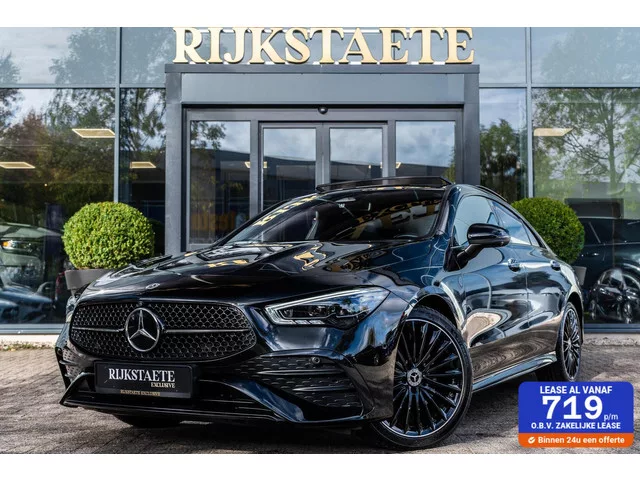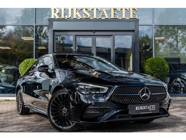 Mercedes CLA-klasse 250e AMG|PANO|BURMESTER|SFEERV|360°|19''. Merk: Mercedes; Model: CLA-klasse; APK tot: 08-09-2027; Tellerstand: 39887 KM; Carrosserievorm: Sedan; Aantal deuren: 4; Brandstofsoort: Hybride (Elektrisch/Benzine); Bouwjaar: 2023; Transmissie: Automaat; Kleur: zwart Metallic; Bekleding: Leder/Alcantara; Kleur interieur: zwart; Motorinhoud: 1332 cc; Aantal cilinders: 4; Motorcode: 282814; Vermogen: 193 kW / 263pk; Ledig gewicht: 1640 kg; Max. trekgewicht: 1600 kg; Aantal zitplaatsen: 5; Verbruik: 0.9 l/100 km; BTW/Marge: Marge, de BTW is niet aftrekbaar; Aantal sleutels: 2; Onderhoudshistorie aanwezig: Dealer onderhouden; Motorrijtuigenbelasting: € 202 - 223 per kwartaal; Emissieklasse: Euro 6. Comfort. Cruise control; Regensensor. Exterieur. 360° Camera; AMG-styling; Achterruitwisser; Adaptief demping systeem; Black Optic; Buitenspiegel(s) automatisch dimmend; Buitenspiegels elektrisch inklapbaar; Buitenspiegels elektrisch verstel- en verwarmbaar; Buitenspiegels met...