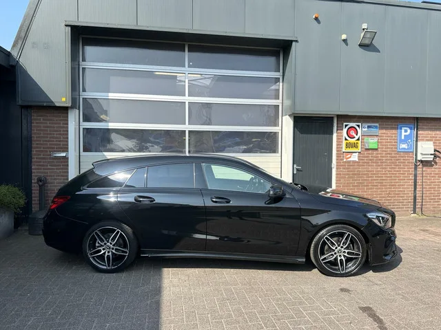 Mercedes CLA-klasse Shooting Brake 180 Business Solution AMG *ALL-IN PRIJS*. Kenteken: XS-078-F; Merk: Mercedes; Model: CLA-klasse Shooting Brake; APK tot: 06-03-2027; Tellerstand: 176923 KM; Carrosserievorm: Station; Aantal deuren: 5; Brandstofsoort: Benzine; Bouwjaar: 2019; Transmissie: Automaat; Kleur: zwart Metallic; Bekleding: Leder/Alcantara; Kleur interieur: zwart; Motorinhoud: 1595 cc; Aantal cilinders: 4; Motorcode: 270910; Vermogen: 90 kW / 123pk; Ledig gewicht: 1360 kg; Max. trekgewicht: 1200 kg; Aantal zitplaatsen: 5; Verbruik: 6.3 l/100 km; BTW/Marge: Marge, de BTW is niet aftrekbaar; Lengte: 469 cm; Breedte: 178 cm; Aantal sleutels: 2; Motorrijtuigenbelasting: € 226 - 247 per kwartaal; Emissieklasse: Euro 6. Comfort. Boordcomputer; Cruise control; Regensensor. Exterieur. AMG-styling; Buitenspiegels elektrisch verstel- en verwarmbaar; Centrale vergrendeling met afstandsbediening; Chroom delen exterieur; Dimlichten automatisch; LED achterlichten; LED dagrijverlichting...