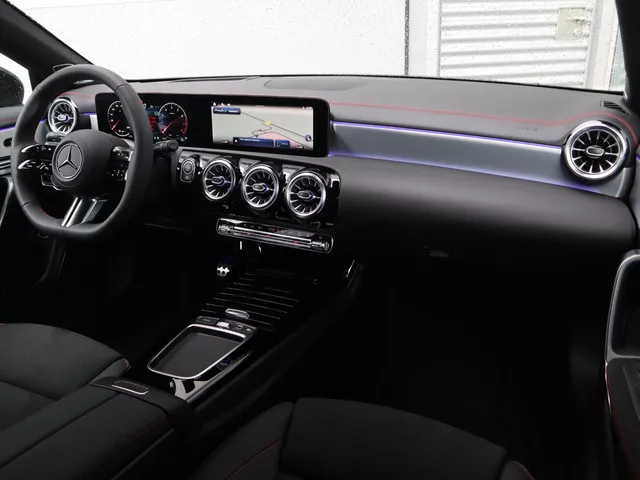 alcantara interieurdelen, Automatische klimaatregeling THERMOTRONIC met 2 zone, Lederlook ARTICO/microvezel MICROCUT Zwart met rode siernaden, Verwarmde stoelen vooraan, achteruitrijcamera, Armsteun achter, neerklapbaar/uitneembaar, Chromen schakelpaddles aan stuurwiel, Dakbekleding in stof zwart, elektrische ramen achter, elektrische ramen voor, Elektrisch verstelbare voorstoelen met geheugenfunctie, keyless start, Mercedes-AMG interieur, Multifunctioneel sportstuurwiel in nappa leder, Multifunctioneel sportstuurwiel in nappa leder, onderaan afgevlakt en chromen afwerking, Neerklapbare achterbank (40/20/60), Opklapbare armsteun in de middenconsole voor bestuurder en voorpassagier, Sfeerverlichting in 64 kleuren, Sierelementen in licht aluminium, Sportstoelen, stuurwiel multifunctioneel, Variable stuurbekrachtiging, Viervoudig verstelbare lendensteun voor stoelen vooraan