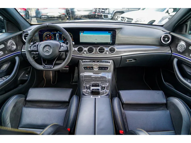 Nieuw op voorraad! Deze prachtige Mercedes-Benz E-Klasse Estate AMG 63 S 4 Matic Premium Plus uit 2018! - Stoelverwarming. - Stoelverkoeling. - Luchtvering. - Edition 1. - Carbon interieur. - Carbon spiegel kappen. - Half alcantara/leer interieur. - Keyless go. - Multifunctioneel stuurwiel. - Multimedia. - Navi full map. - Camera. - Elektrische glazen pano. - Cruise control adaptief. - Stuurhulp. 4WD; 450 kW; 8 cilinders; 3.982cc; Gewicht: 1.970kg; Laadvermogen: 695kg; GVW: 2.665kg; Max. trekgewicht: 1.900kg; Wielbasis: 294cm; 0-100 km/h: 3,5s; Topsnelheid: 300km/u; Interieurkleur: zwart; 5 zitplaatsen; 10,8 l/100km; 214 g/km CO₂; Energielabel G; Euro 6; Onderhoudsboekjes aanwezig; APK: tot nov. 2026; Wegenbelasting: € 387-€ 423p/kwrt; Beschikbare afleverpakketten: Pakket #1 (€ 395); Pakket #2 (€ 695); Pakket #3 (€ 995); S-244-GX