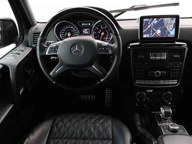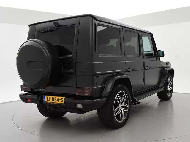 G63 AMG 5.5 V8 Bi-Turbo 544 PK 4X4 met 7-traps automaat, Nieuw geleverd in Duitsland, dus originele EU uitvoering, Nederlands kenteken is uit 2018. Registratie/bouwjaar 11-2013 maar modeljaar 2014 in de wagenkaart, RDW nieuwprijs 234.497 euro. In 2024 compleet gewrapt in het mat zwart: Satin Black, zoals de originele fabriekskleur op het nieuwste type. Tevens zijn in 2024 de beide uitlaatdempers vervangen (origineel van Mercedes-Benz). In 11-2024 nog onderhoud gehad. Diverse onderhoudsfacturen aanwezig. De fabriekskleur onder de wrap is glanzend zwart: Obsidian black metallic exterieurkleur met Designo zwart leder exclusief interieur met ruitjes stiksels in de stoelen en deurpanelen, Designo exclusief pakket met zwarte alcantara hemelbekleding, Designo trim Piano Lacquer black dashboard inleg, Designo hout/leder stuurwiel met zwart pianolak hout, Zwarte exterieurstyling: zwarte logo's, type aanduidingen, stootlijsten, raamlijsten, treeplanken etc. Rear Entertainment origineel DVD...