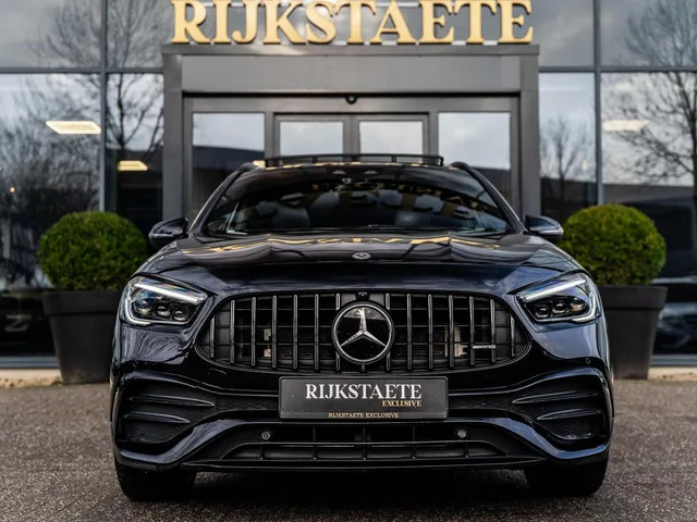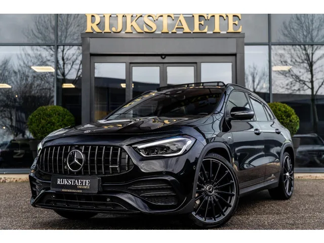 Mercedes GLA-klasse AMG 35 4MATIC|PANO|SFEER|MEMORY|ACC|21''. Merk: Mercedes; Model: GLA-klasse; APK tot: 10-06-2027; Tellerstand: 55852 KM; Carrosserievorm: SUV; Aantal deuren: 5; Brandstofsoort: Benzine; Bouwjaar: 2021; Transmissie: Automaat; Kleur: zwart Metallic; Bekleding: Leder/Alcantara; Kleur interieur: zwart; Motorinhoud: 1991 cc; Aantal cilinders: 4; Motorcode: 260920; Vermogen: 225 kW / 306pk; Ledig gewicht: 1580 kg; Max. trekgewicht: 1800 kg; Aantal zitplaatsen: 5; Verbruik: 8.7 l/100 km; BTW/Marge: Marge, de BTW is niet aftrekbaar; Aantal sleutels: 2; Onderhoudshistorie aanwezig: Dealer onderhouden; Motorrijtuigenbelasting: € 280 - 306 per kwartaal; Emissieklasse: Euro 6. Pakket: Parkeer pakket. Parkeer assistent; Parkeersensor achter; Parkeersensor voor. Pakket: Premium Plus pakket. Automatische snelheidsbegrenzing ISA; Cruise control adaptief met Stop&Go en stuurhulp; Elektrisch bedienbare achterklep met sensorsturing; Elektrisch glazen panorama-dak; Elektrisch...