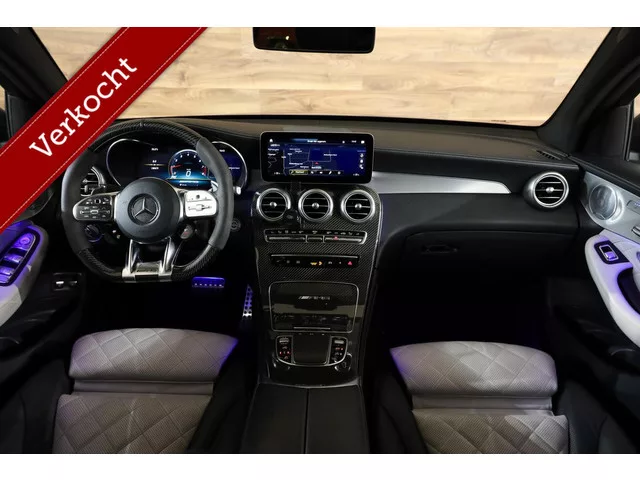 Mercedes GLC-63 S AMG 4MATIC+|Keramisch|Burmester|Designo|Pano|HUD|. Mercedes GLC-63 S AMG 4MATIC+|Keramisch|Burmester|Designo|Pano|HUD|. Merk: Mercedes; Model: GLC-klasse; APK tot: 10-11-2027; Tellerstand: 138579 KM; Carrosserievorm: SUV; Aantal deuren: 5; Brandstofsoort: Benzine; Bouwjaar: 2019; Transmissie: Automaat; Kleur: grijs; Kleurnaam: Designo Magno Matte; Bekleding: Leder; Kleur interieur: wit; Motorinhoud: 3982 cc; Aantal cilinders: 8; Motorcode: 177980; Vermogen: 375 kW / 511pk; Ledig gewicht: 1930 kg; Max. trekgewicht: 2200 kg; Aantal zitplaatsen: 5; Verbruik: 13 l/100 km; BTW/Marge: Marge, de BTW is niet aftrekbaar; Aantal sleutels: 2; Motorrijtuigenbelasting: € 344 - 376 per kwartaal; Emissieklasse: Euro 6. Pakket: Stoelen pakket. Elektrisch verstelb. bestuurdersstoel met geheugen; Elektrisch verstelb. passagiersstoel met geheugen; Sportstoelen. Pakket: Rijassistentiepakket Plus. Achteruitrij assistent; Bots herkenning en activatie; Cruise control adaptief met Stop&Go...