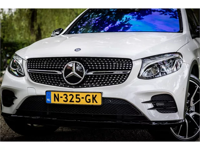 Fraaie en compleet uitgevoerde Mercedes GLC 43 AMG 4-Matic. De auto is in keurige conditie en heeft een ruime lijst aan opties. Lakkleur is Designo Diamond White metallic en het interieur is voorzien van zwart leder met rode stiksels. De interieurinrichting is voorzien van carbon. De hemelbekleding is uitgevoerd in donker antraciet. Tot de volledige uitrusting behoort een glazen panoramadak, Burmester surround audio, distronic adaptieve cruise control, 21" AMG 5-dubbelspaaks velgen, ambienteverlichting met instelbare kleuren, Comand Online navigatie, elektrisch verstelbare voorstoelen met memory functie, dode hoek assistent, achteruitrijcamera, LED koplampen met grootlichtassistent, actieve spoor assistent, keyless entry en start, elektrisch bedienbare achterklep, afneembare trekhaak, night pakket met hoogglans zwarte raamlijsten en zwarte spiegels, verwarmbare voorstoelen, verwarmbare zitplaatsen achter, zijruiten en achterruit verduisterd, zijruiten voor akoestisch glas,...