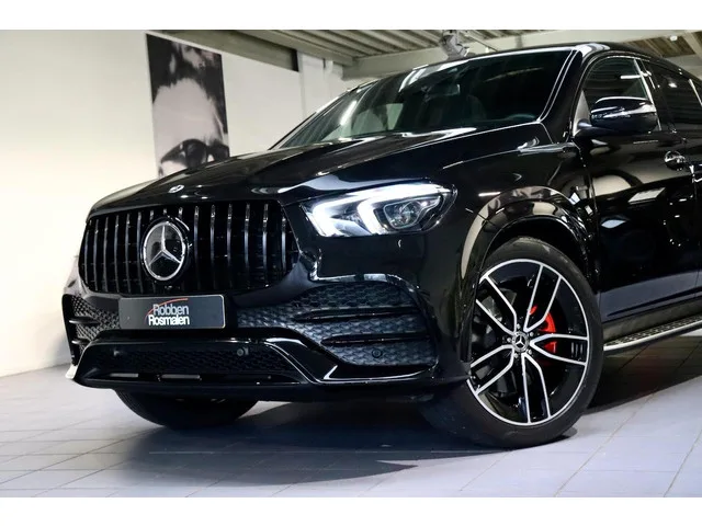 MERCEDES-BENZ GLE COUPÉ 350 E 4MATIC PREMIUM+ | 53 AMG PACK: 07-2021 | 71.122 km | Marge auto | Obsidian Black Metallic. Deze Mercedes-Benz GLE Coupé 350e 4MATIC is uitgevoerd in de stijl die iedereen wil: Premium+, luxe, dynamisch, voorzien van het 53 AMG Pack en tot in detail samengesteld. De perfecte combinatie van kracht, uitstraling, comfort en efficiency dankzij de plug-in hybrid aandrijving. BELANGRIJKSTE EXTRA’S: 53 AMG Pack (exterieur & interieur accenten). ; Obsidian Black metallic lak. ; Zeer complete Premium+ uitvoering. ; Marge auto (geen btw over aanschafprijs). ; EXTERIEUR: Obsidian Black Metallic (197U). ; 53 AMG Pack inclusief: AMG achterspoiler (U47). ; AMG stylingdetails voor bumper/achterbumper. ; AMG grille in diamantoptiek. ; Night-pakket (P55). Donkere accenten rondom. ; Zwart gespoten buitenspiegels. ; Verduisterde zijruiten achter & achterruit. ; Panoramisch schuif-/kanteldak (413). ; Opstapplaten in aluminium (846). ; Lichtmetalen AMG-velgen 22": Voor:...
