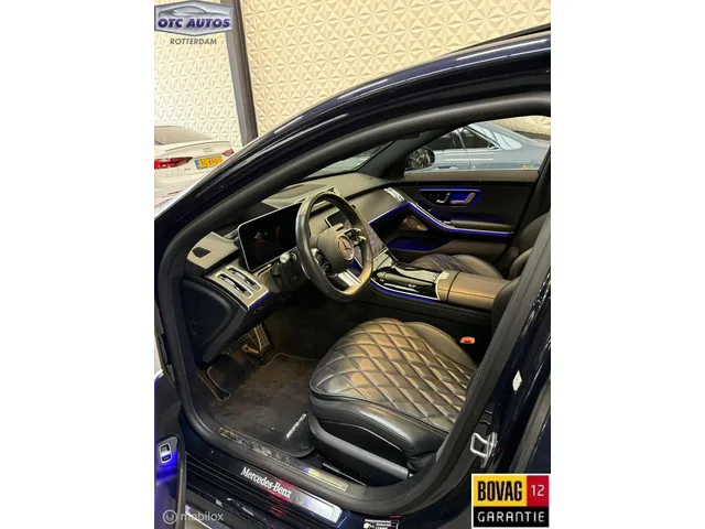 Pas onderhoudsbeurt gehad volgende onderhoudsbeurt bij 70.000 km of in 2027. Mercedes S-klasse 580 e AMG Line Panoramaschuifdak-Dealer onderhoud rek. ter inzage. Kenteken: S-792-JF; Merk: Mercedes; Model: S-klasse; APK tot: 02-02-2027; Tellerstand: 47929 KM; Carrosserievorm: Sedan; Aantal deuren: 4; Brandstofsoort: Hybride (Elektrisch/Benzine); Bouwjaar: 2023; Transmissie: Automaat; Kleur: blauw Metallic; Kleurnaam: Nauticblauw; Bekleding: Leder; Kleur interieur: zwart; Motorinhoud: 2999 cc; Aantal cilinders: 6; Vermogen: 270 kW / 368pk; Ledig gewicht: 2280 kg; Aantal zitplaatsen: 5; Verbruik: 0.6 l/100 km; BTW/Marge: Marge, de BTW is niet aftrekbaar; Lengte: 521 cm; Breedte: 195 cm; Aantal sleutels: 2; Onderhoudshistorie aanwezig: Ja; Motorrijtuigenbelasting: € 468 - 512 per kwartaal; Emissieklasse: Euro 6; Bandenmaat voor: 255/35/21; Bandemaat achter: 285/30/21. Comfort. Regensensor. Exterieur. AMG-styling; Adaptief demping systeem; Buitenspiegel(s) automatisch dimmend...