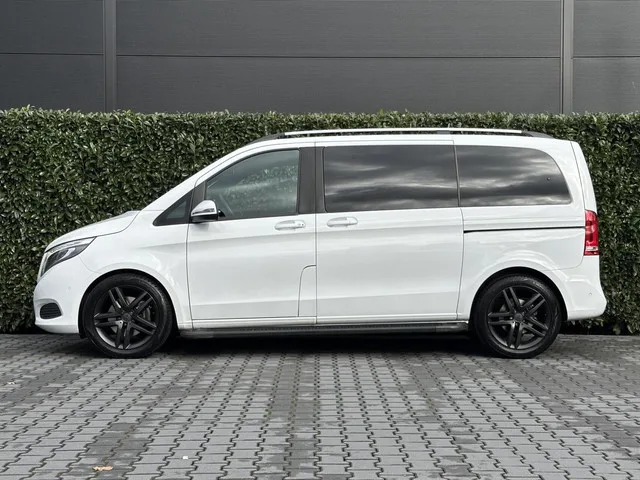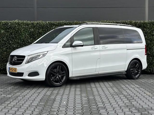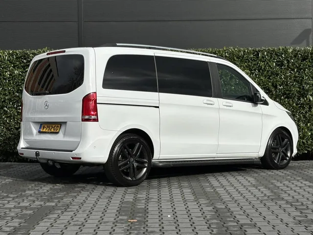 Mercedes V-klasse 250d AVANTGARDE DC 5 PERSONENBUS, NL AUTO, NAP LOGISCH, BURMESTER, LEDER, EURO 6, NAVI, CAMERA, ADAPT CRUISE, LANE ASSIST, DODEHOEK, CLIMATE CONTROL, STOELVERWARMING, TREKHAAK, SCHUIFDEUR BEIDE KANTEN, LICHTMETAAL 19". Kenteken: V-752-GD; Merk: Mercedes; Model: V-klasse; APK tot: 30-08-2026; Tellerstand: 184866 KM; Carrosserievorm: Personenbus; Aantal deuren: 5; Brandstofsoort: Diesel; Bouwjaar: 2017; Transmissie: Automaat; Motorinhoud: 2143 cc; Aantal cilinders: 4; Vermogen: 140 kW / 191pk; Ledig gewicht: 2105 kg; Max. trekgewicht: 2000 kg; Aantal zitplaatsen: 5; Verbruik: 6 l/100 km; BTW/Marge: Marge, de BTW is niet aftrekbaar; Breedte: 193 cm; Laadruimte hoogte: 133 cm; Emissieklasse: Euro 6. Pakket: Interieur pakket. Lederen bekleding; Stuur leder. Pakket: Parkeer pakket. Achteruitrijcamera; Parkeer assistent. Pakket: Rijassistentiepakket. Dodehoek detectie; Rijstrooksensor. Comfort. Boordcomputer; Cruise control; Regensensor. Exterieur. Achterruitwisser...