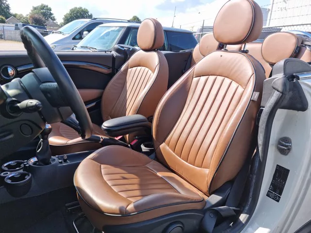 Prachtige Mini Cooper Cabrio in pepper White. Uitgevoerd met vele mooie opties onder andere: - Cognac lederen interieur. - Navigatie. - Xenon. - Cruise control. - Stoelverwarming. - PDC. - Climate control. - Airco automatisch. - 17 Inch. Meer informatie: Transmissie: 6 versnellingen, Handgeschakeld; Modelreeks: mrt. 2010 - dec. 2015; Voorwielaandrijving; Vermogen: 90 kW (122 PK); Koppel: 160 Nm; Aantal cilinders: 4; Motorinhoud: 1.598 cc; Ledig gewicht: 1.140 kg; Wielbasis: 247 cm; Tankinhoud: 40 liter; Acceleratie (0-100): 9,8 s; Topsnelheid: 198 km/u; 4 zitplaatsen; Gemiddeld brandstofverbruik: 5,7 l/100km (1 op 17,5); Energielabel: C; 2 sleutels; Geen motorrijtuigenbelasting; Beschikbare afleverpakketten: BMC Cars basis pakket (€ 295); BMC Cars Premium pakket (€ 595)
