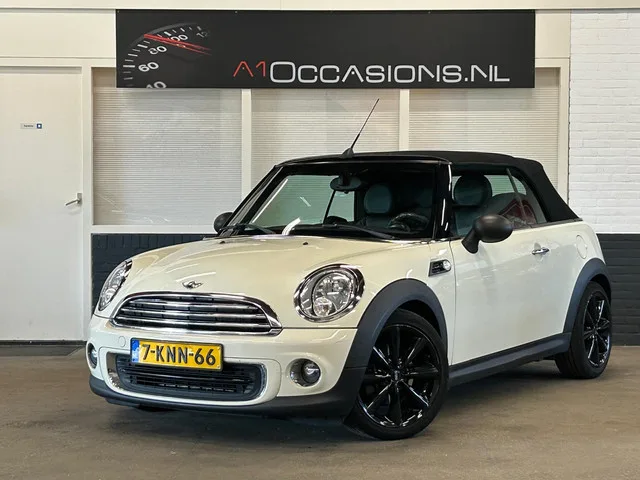 Leuke en frisse Mini Cabrio Cooper! Fijne auto met veel comfort! Heerlijk cabrio rijden in de zomer! Onderhouden geweest bij de plaatselijke garage. De distributie is een ketting. De auto word geleverd met 2 sleutels ,de boekjes en de Nationale Auto Pas. 6 versn., Handgeschakeld; Modeljaar: 2010; 4WD; 72 kW; 153 Nm; 4 cilinders; 1.598cc; Gewicht: 1.135kg; Laadvermogen: 455kg; GVW: 1.590kg; LxBxH: 372x168x141cm; Wielbasis: 247cm; 40l tank; 0-100 km/h: 11,3s; Topsnelheid: 181km/u; Interieurkleur: zwart; 4 zitplaatsen; 5,4 l/100km; 6,9 l/100km; 4,6 l/100km; 127 g/km CO₂; Energielabel C; Euro 6; Onderhoudsboekjes aanwezig; Aantal eigenaren: 2; 2 sleutels (2 handzenders); Wegenbelasting: € 145-€ 158p/kwrt; 7-KNN-66