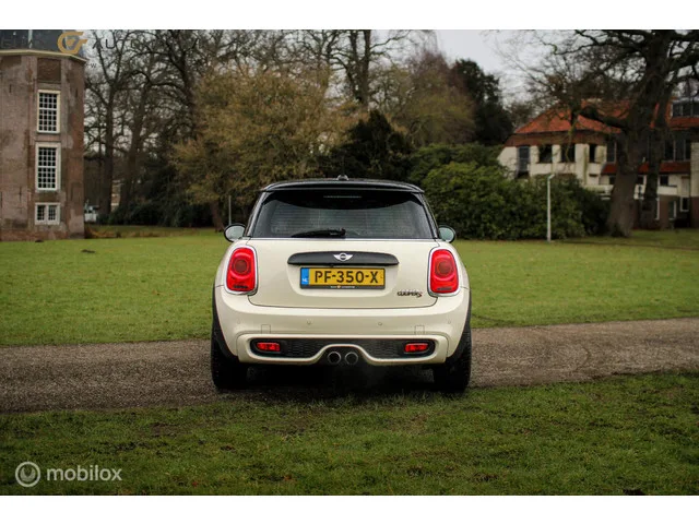 Mini 2.0 Cooper S | AUT | NAVI |. Kenteken: PF-350-X; Merk: Mini; Model: Mini; APK tot: 22-07-2026; Tellerstand: 182051 KM; Carrosserievorm: Hatchback; Aantal deuren: 3; Brandstofsoort: Benzine; Bouwjaar: 2015; Transmissie: Automaat; Kleur: wit; Kleurnaam: pepper-white; Bekleding: Leder/Stof; Kleur interieur: zwart; Interieurnaam: Stof/leder Diamond/Carbon Black; Motorinhoud: 1998 cc; Aantal cilinders: 4; Motorcode: B48A20A; Vermogen: 141 kW / 192pk; Ledig gewicht: 1150 kg; Aantal zitplaatsen: 4; Verbruik: 5.3 l/100 km; BTW/Marge: Marge, de BTW is niet aftrekbaar; Lengte: 385 cm; Hoogte: 1414 cm; Onderhoudshistorie aanwezig: Ja; Motorrijtuigenbelasting: € 145 - 158 per kwartaal; Emissieklasse: Euro 6. Pakket: Wired pakket. Multimedia-voorbereiding; Navigatiesysteem full map. Comfort. Boordcomputer; Cruise control; Regensensor. Exterieur. Achterruitwisser; Achterspoiler; Buitenspiegels elektrisch verstel- en verwarmbaar; Centrale vergrendeling met afstandsbediening; Dakspoiler...