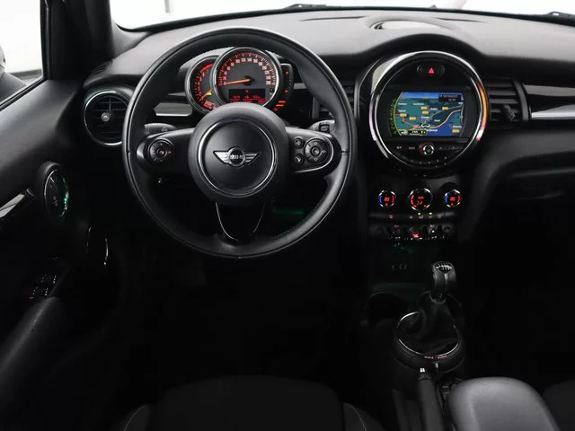 Met zijn dynamische eigenschappen belooft deze Mini Mini u een heleboel rijplezier. Hij is ontwikkeld op een geavanceerd onderstel en biedt altijd een veilig weggedrag. Hoewel de benzinemotor van deze Mini zuinig is, levert hij niet in op prestaties. Zon en frisse lucht krijgen vrij spel dankzij het elektrisch bediende glazen panoramadak. Tot de uitrusting van deze Mini behoren ook 17 inch lichtmetalen velgen, LED koplampen, halflederen bekleding, dakspoiler, in hoogte verstelbare passagiersstoel en in delen neerklapbare achterbank. Het full map navigatiesysteem brengt u soepel en vlot naar uw bestemming. Ook is de auto voorzien van automatische airconditioning. Andere zender? Het geluid aanpassen? Dat kan allemaal moeiteloos door de audiobediening op het stuur. Parkeersensoren helpen u tijdens het in- en uitparkeren. De elektronische systemen in deze Mini helpen u actief om comfortabeler te rijden. Een automatisch inschakelbare verlichting en een regensensor houden de...