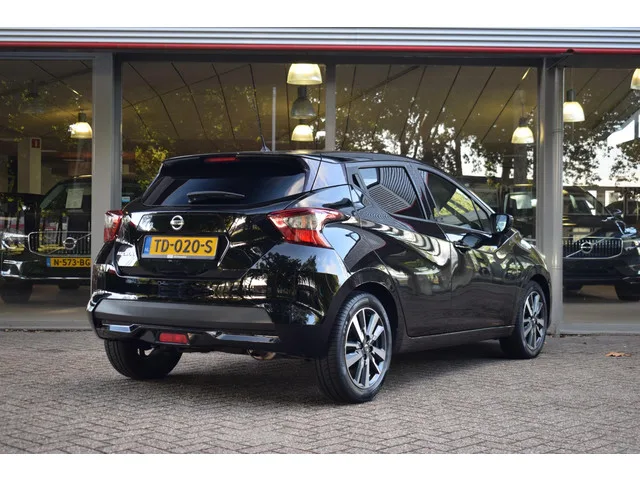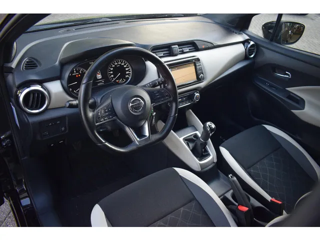 Zo'n kleinere auto heeft een lading aan pluspunten. Manoeuvreren in de stad, lage kosten en toch maximaal genieten! Met zijn pittige motor stuurt u deze auto vlot door het verkeer heen. Verder is de Nissan uitgerust met: 16 inch lichtmetalen velgen, LED-dagrijverlichting, extra getint glas, in delen neerklapbare achterbank en snelheidsafhankelijke stuurbekrachtiging. Ook achter de auto geen verrassingen bij het inparkeren. Daarvoor zorgt de achteruitrijcamera. Zorgeloos en geconcentreerd rijden? Het full map navigatiesysteem wijst de weg! Of het buiten nu warm is of koud, dankzij automatische airconditioning is het binnen altijd behaaglijk. Alle belangrijke audiofuncties heeft u onder handbereik met de audiobediening op het stuur. De DAB-ontvanger zorgt voor een ruime keuze uit digitale radiozenders en een kristalheldere geluidsweergave. Ook regensensor, cruise control, lederen stuur, centrale deurvergrendeling met afstandsbediening en boordcomputer zijn aan boord. De nieuwste...