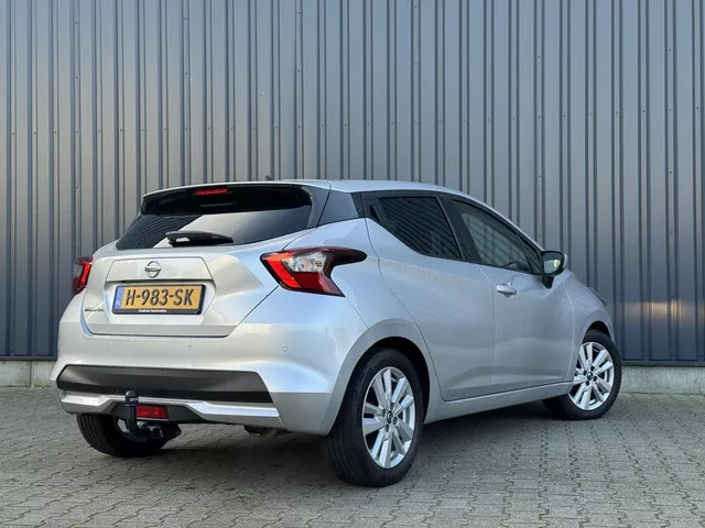 Nette en compacte Nissan Micra 1.0 handgeschakeld, voorzien van prettige opties voor dagelijks gebruik. Uitgerust met achteruitrijcamera, airconditioning, cruise control en Apple CarPlay/Android Auto voor eenvoudige smartphoneconnectie. Deze Micra combineert een zuinige motor met een comfortabele en moderne rijervaring. Ideaal als stadsauto of betrouwbare auto voor woon-werkverkeer. Belangrijkste opties: Achteruitrijcamera. ; Airconditioning. ; Cruise control. ; Apple CarPlay / Android Auto. ; Handgeschakelde transmissie. Kortom: een complete, zuinige en gebruiksvriendelijke hatchback met een frisse uitstraling. 5 versn., Handgeschakeld; Modeljaar: 2017; 74 kW; 160 Nm; 3 cilinders; 999cc; Gewicht: 1.035kg; Laadvermogen: 515kg; GVW: 1.550kg; Max. trekgewicht: 1.200kg; LxB: 400x174cm; Wielbasis: 253cm; 41l tank; 0-100 km/h: 10,9s; Topsnelheid: 184km/u; Stof; 5 zitplaatsen; 4,5 l/100km; 5,6 l/100km; 3,9 l/100km; 104 g/km CO₂; Energielabel C; Euro 6d-TEMP; APK bij aflevering; BOVAG...