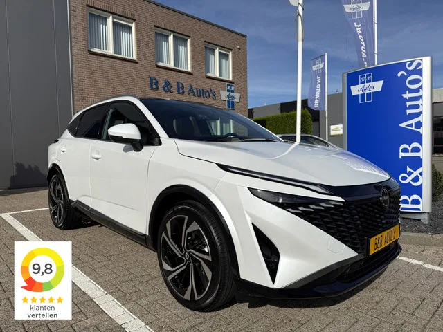 Dit is een zeer mooie en compleet geleverde nieuwste model NISSAN QASHQAI met een krachtige 158pk motor in de sportieve en zeer luxe TEKNA PLUS uitvoering met een 7-traps automaat die zowel technisch als uiterlijk in nieuwstaat verkeert, deze auto is aantoonbaar origineel afkomstig van de 1e eigenaar, het onderhoudsboekje en alle sleutels zijn compleet aanwezig. Deze auto zit nog in de volledige fabrieksgarantie tot 23-04-2028, ...... deze sterke en zuinige 1.3 Mild-Hybrid motor word aangedreven door een distributieketting, die hoeft in principe gedurende de hele levensduur van de auto niet vervangen te worden. Minder risicovol en veel goedkoper dus! , en let op deze auto met schone Euro 6 norm motor heeft een gemiddeld verbruik van 1 op 16 en een trekvermogen van maar liefst 1800kg, dus goed voor het milieu maar ook voor uw portemonnee. ...... Bij ons geen Black-Friday en ook geen Doei-Doei dagen en al helemaal geen 21% BTW korting, nee bij ons geen nonsens, transparantie-openheid...