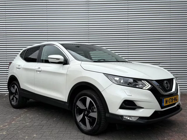 Nissan Qashqai 1.2 Acenta Camera Cruise Navi Led Pdc Aux 2018 Eerste Eigenaar. Kenteken: N-178-HG; Merk: Nissan; Model: Qashqai; APK tot: 31-03-2027; Tellerstand: 198433 KM; Carrosserievorm: SUV; Aantal deuren: 5; Brandstofsoort: Benzine; Bouwjaar: 2018; Transmissie: Handgeschakeld 6 bak; Kleur: wit Parelmoer; Bekleding: Stof; Kleur interieur: antraciet; Motorinhoud: 1197 cc; Aantal cilinders: 4; Motorcode: HRA2; Vermogen: 85 kW / 116pk; Ledig gewicht: 1250 kg; Max. massa voertuig: 1860 kg; Max. trekgewicht: 1200 kg; Aantal zitplaatsen: 5; Verbruik: 5.6 l/100 km; BTW/Marge: Marge, de BTW is niet aftrekbaar; Lengte: 439 cm; Breedte: 181 cm; Hoogte: 162 cm; Aantal sleutels: 2; Onderhoudshistorie aanwezig: Ja; Motorrijtuigenbelasting: € 172 - 188 per kwartaal; Emissieklasse: Euro 6; Wielbasis: 265 mm. Comfort. Cruise control; Regensensor. Exterieur. Buitenspiegels elektr. met geheugen; Buitenspiegels elektrisch inklapbaar; Buitenspiegels elektrisch verstel- en verwarmbaar; Chroom delen...