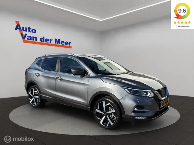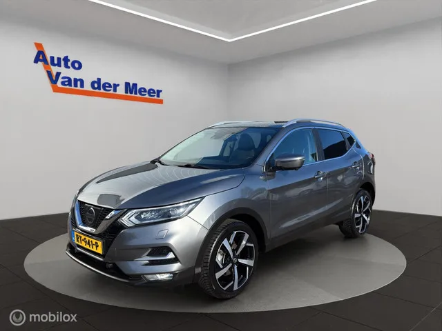 Nissan Qashqai 1.2 Tekna. Kenteken: RT-941-P; Merk: Nissan; Model: Qashqai; APK tot: 21-11-2026; Tellerstand: 113081 KM; Carrosserievorm: SUV; Aantal deuren: 5; Brandstofsoort: Benzine; Bouwjaar: 2017; Transmissie: Automaat; Kleur: grijs; Bekleding: Leder/Stof; Motorinhoud: 1197 cc; Aantal cilinders: 4; Motorcode: HRA2; Vermogen: 85 kW / 116pk; Ledig gewicht: 1260 kg; Max. trekgewicht: 1000 kg; Aantal zitplaatsen: 5; Verbruik: 5.6 l/100 km; BTW/Marge: Marge, de BTW is niet aftrekbaar; Lengte: 439 cm; Aantal sleutels: 2; Onderhoudshistorie aanwezig: Ja; Motorrijtuigenbelasting: € 199 - 217 per kwartaal; Emissieklasse: Euro 6. Comfort. Cruise control; Regensensor. Exterieur. Achterruitwisser; Buitenspiegels elektrisch inklapbaar; Buitenspiegels elektrisch verstel- en verwarmbaar; Buitenspiegels in carrosseriekleur; Chroom delen exterieur; Dakrails; Dimlichten automatisch; Extra getint glas achter; Keyless entry; Koplampen adaptief; LED achterlichten; LED dagrijverlichting; LED...