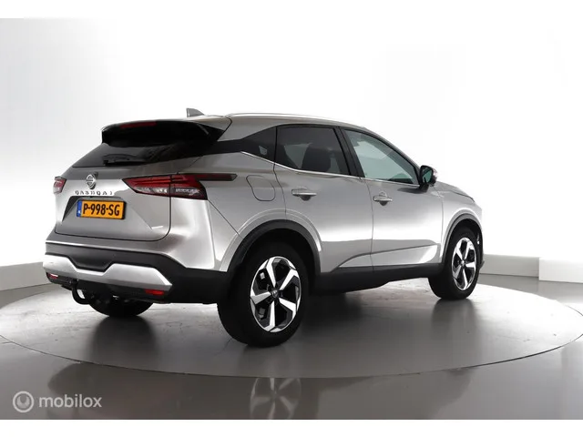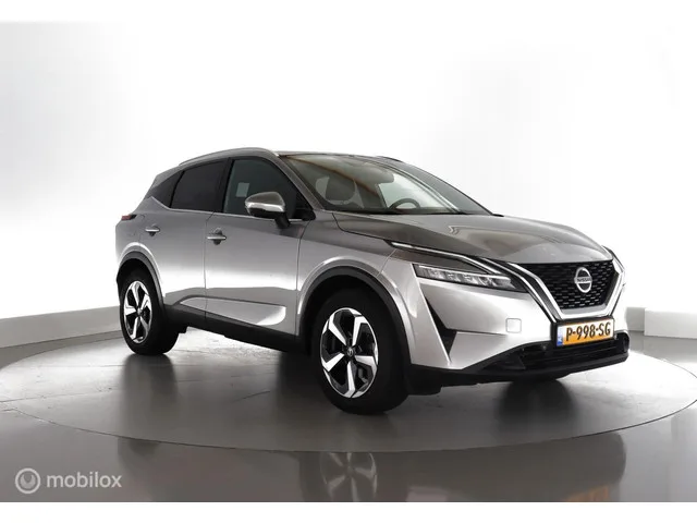 Nissan Qashqai 1.3 MHEV 158PK Automaat Premiere Edition trekhaak|pano|led|cam|hud|acc|lmv18. Kenteken: P-998-SG; Merk: Nissan; Model: Qashqai; APK tot: 31-05-2026; Tellerstand: 49351 KM; Carrosserievorm: SUV; Aantal deuren: 5; Brandstofsoort: Benzine; Bouwjaar: 2022; Transmissie: Automaat; Kleur: grijs Metallic; Kleurnaam: Silver Metallic Kleurcode: KY0; Bekleding: Stof; Motorinhoud: 1332 cc; Aantal cilinders: 4; Motorcode: HR13; Vermogen: 116 kW / 158pk; Ledig gewicht: 1350 kg; Max. trekgewicht: 1800 kg; Aantal zitplaatsen: 5; Verbruik: 6.4 l/100 km; BTW/Marge: BTW aftrekbaar, de prijs is inclusief BTW; Lengte: 443 cm; Breedte: 184 cm; Hoogte: 1625 cm; Aantal sleutels: 2; Onderhoudshistorie aanwezig: Ja; Motorrijtuigenbelasting: € 199 - 217 per kwartaal; Emissieklasse: Euro 6; Bandenmaat voor: 235/55/18; Bandemaat achter: 235/55/18; Wielbasis: 2670 mm. Comfort. Cruise control; Regensensor. Exterieur. Achterruitwisser; Buitenspiegel rechts; Buitenspiegels elektrisch inklapbaar...