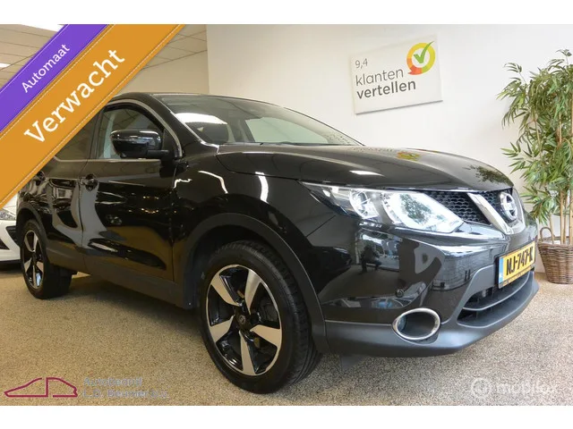 Nissan Qashqai 1.2 AUT. N-Vision *NAVI, 360 CAM, NL, 60.705 NAP km, RIJKLAARPRIJS!*. Kenteken: NJ-747-K; Merk: Nissan; Model: Qashqai; APK tot: 31-01-2027; Tellerstand: 60705 KM; Carrosserievorm: SUV; Aantal deuren: 5; Brandstofsoort: Benzine; Bouwjaar: 2017; Transmissie: Automaat; Kleur: zwart Metallic; Motorinhoud: 1197 cc; Aantal cilinders: 4; Motorcode: HRA2; Vermogen: 85 kW / 116pk; Ledig gewicht: 1260 kg; Max. trekgewicht: 1000 kg; Aantal zitplaatsen: 5; Verbruik: 5.8 l/100 km; BTW/Marge: Marge, de BTW is niet aftrekbaar; Lengte: 438 cm; Aantal sleutels: 2; Onderhoudshistorie aanwezig: Ja; Motorrijtuigenbelasting: € 163 - 183 per kwartaal; Emissieklasse: Euro 6. Comfort. Cruise control. Exterieur. Achterruitwisser; Buitenspiegels elektrisch inklapbaar; Buitenspiegels elektrisch verstel- en verwarmbaar; Chroom delen exterieur; Dimlichten automatisch en regensensor; Extra getint glas achter; Keyless entry; LED dagrijverlichting; Lichtmetalen velgen 18"; Metaalkleur; Mistlampen...
