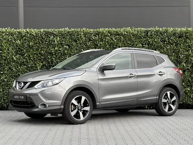 Nissan Qashqai 1.6 N CONNECT, PANO, 360 CAMERA, NAVI, CRUISE, 360 CAMERA, ECC-AIRCO, STOELVERWARMING, TREKHAAK, LICHTMETAAL 18" EXTRA WINTER SET 16". Merk: Nissan; Model: Qashqai; Tellerstand: 58040 KM; Carrosserievorm: SUV; Aantal deuren: 5; Brandstofsoort: Benzine; Bouwjaar: 2015; Transmissie: Handgeschakeld; Motorinhoud: 1618 cc; Aantal cilinders: 4; Vermogen: 120 kW / 163pk; Ledig gewicht: 1290 kg; Aantal zitplaatsen: 5; Verbruik: 6 l/100 km; BTW/Marge: Marge, de BTW is niet aftrekbaar; Aantal sleutels: 2; Onderhoudshistorie aanwezig: Ja. Pakket: Design pakket. Dakrails; Panoramadak. Comfort. Cruise control. Exterieur. Achterruitwisser; Buitenspiegels elektrisch inklapbaar; Buitenspiegels elektrisch verstel- en verwarmbaar; Buitenspiegels elektrisch verstelbaar; Buitenspiegels verwarmbaar; Dimlichten automatisch en regensensor; Extra getint glas achter; Getint glas; Keyless entry; LED dagrijverlichting; Lichtmetalen velgen 18"; Mistlampen voor; Panoramadak; Park Distance Control...