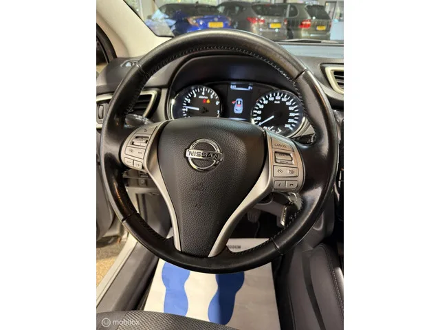 Nissan Qashqai 1.6 Acenta Clima/Cruise/Trekhaak/Camera. Kenteken: JB-248-R; Merk: Nissan; Model: Qashqai; APK tot: 12-10-2026; Tellerstand: 154701 KM; Carrosserievorm: SUV; Aantal deuren: 5; Brandstofsoort: Benzine; Bouwjaar: 2015; Transmissie: Handgeschakeld; Kleur: grijs; Motorinhoud: 1618 cc; Aantal cilinders: 4; Vermogen: 120 kW / 163pk; Ledig gewicht: 1290 kg; Max. trekgewicht: 1500 kg; Aantal zitplaatsen: 5; Verbruik: 5.8 l/100 km; BTW/Marge: Marge, de BTW is niet aftrekbaar; Aantal sleutels: 2; Motorrijtuigenbelasting: € 192 - 211 per kwartaal; Emissieklasse: Euro 6. Comfort. Cruise control. Exterieur. Buitenspiegels elektrisch inklapbaar; Buitenspiegels elektrisch verstel- en verwarmbaar; Chroom delen exterieur; Dimlichten automatisch en regensensor; LED dagrijverlichting; Lichtmetalen velgen 17"; Metaalkleur; Mistlampen voor; Trekhaak. Infotainment. Audioinstallatie met CD-speler; Multimedia-voorbereiding; Navigatiesysteem; Stuur multifunctioneel. Interieur. Achterbank in...