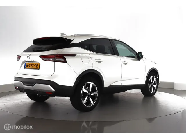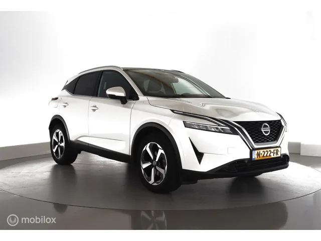 Nissan Qashqai 1.3 140pk Premiere Edition NL-auto|nav|360cam|acc|pano|lmv18. Kenteken: N-222-FR; Merk: Nissan; Model: Qashqai; APK tot: 02-10-2027; Tellerstand: 57980 KM; Carrosserievorm: SUV; Aantal deuren: 5; Brandstofsoort: Benzine; Bouwjaar: 2021; Transmissie: Handgeschakeld 6-versnellingen; Kleur: wit Parelmoer; Kleurnaam: Pearl White metallic kleurcode QAB; Bekleding: Stof; Kleur interieur: grijs; Interieurnaam: G; Motorinhoud: 1332 cc; Aantal cilinders: 4; Motorcode: HR13; Vermogen: 103 kW / 140pk; Ledig gewicht: 1304 kg; Max. trekgewicht: 1400 kg; Aantal zitplaatsen: 5; Verbruik: 6.4 l/100 km; BTW/Marge: Marge, de BTW is niet aftrekbaar; Lengte: 443 cm; Breedte: 184 cm; Hoogte: 1625 cm; Aantal sleutels: 2; Onderhoudshistorie aanwezig: Ja; Motorrijtuigenbelasting: € 199 - 217 per kwartaal; Emissieklasse: Euro 6. Comfort. Cruise control; Regensensor. Exterieur. Achterruitwisser; Buitenspiegel rechts; Buitenspiegels elektrisch inklapbaar; Buitenspiegels elektrisch verstel- en...