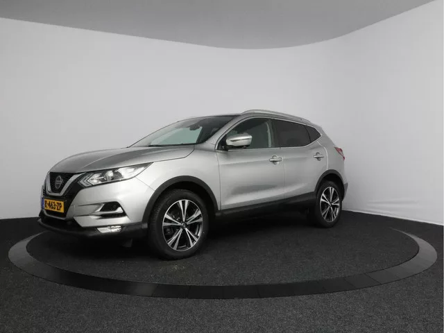 De vormgeving van deze Nissan Qashqai is stijlvol maar ingetogen en dat maakt meteen duidelijk dat u van deze auto pure kwaliteit mag verwachten. In deze auto vindt u een benzinemotor en een handgeschakelde zesversnellingsbak. Het glazen panoramadak biedt u een breed zicht op de omgeving. Bij de rijke uitrusting horen ook 18 inch lichtmetalen velgen, LED-dagrijverlichting, in hoogte verstelbare passagiersstoel, donker getint glas achter, in delen neerklapbare achterbank en LED-achterlichten. Of u nu achteruit rijdt, parkeert of een smalle straat inslaat, de 360 graden camera op deze auto, mogelijk gemaakt door vier camera's, biedt een perfect beeld van uw omgeving. Nooit meer de weg zoeken en ontspannen arriveren bij uw reisdoel. Met het full map navigatiesysteem zit u veilig en ontspannen in de auto. Natuurlijk is er ook automatische airconditioning aanwezig. Veiligheid en gemak zijn er in alle opzichten. Neem bijvoorbeeld de audiobediening op het stuur. Met de DAB-ontvanger heeft...