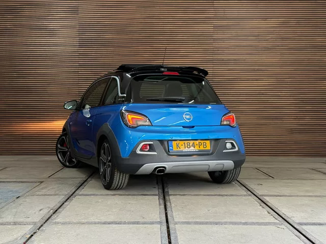 Complete en stoere Opel Adam Rocks S Cabrio - Half lederen bekleding met Stoelverwarming en Stuurwielverwarming (Leder-Pack) - DAB Radio - 18' inch sportwielen - Parkeersensoren achter - Climate Control Dakkleur-Pack, ADAM-pack (Autotelefoonvoorbereiding met Bluetooth, Binnenspiegel automatisch dimmend, DAB-ontvanger, Dimlichten automatisch, Parkeersensor achter, Regensensor, Telefoonintegratie premium) en ga zo maar door! 6 versn., Handgeschakeld; Voorwielaandrijving; Bandenmaat: 225/35 R18; 110 kW; 4 cilinders; 1.364cc; Gewicht: 1.063kg; Laadvermogen: 502kg; GVW: 1.565kg; LxBxH: 375x172x148cm; Wielbasis: 231cm; 0-100 km/h: 8,5s; Topsnelheid: 210km/u; Interieurkleur: Zwart; 4 zitplaatsen; 5,9 l/100km; 7,6 l/100km; 4,9 l/100km; 139 g/km CO₂; Energielabel F; Euro 6; Onderhoudsboekjes aanwezig; APK bij aflevering; Schadevrij; 2 sleutels (2 handzenders); Wegenbelasting: € 140-€ 154p/kwrt; Beschikbare afleverpakketten: OPG Afleverpakket (€ 795); Full CarGarantie Afleverpakket...