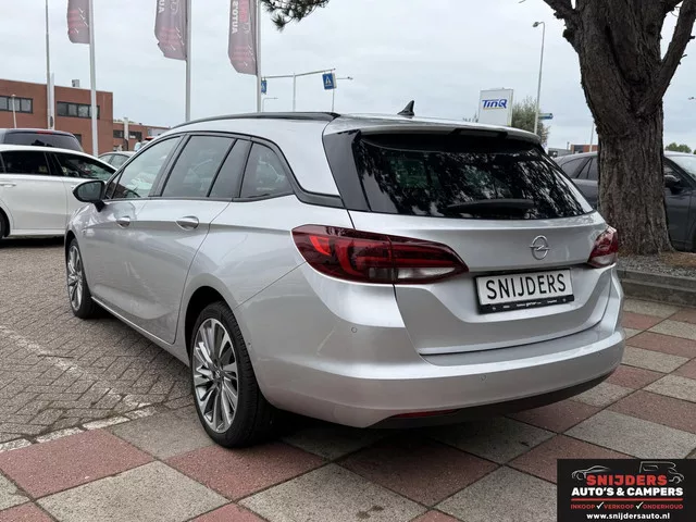 Opel Astra Sports Tourer 1.4 Blitz Elegance. Merk: Opel; Model: Astra Sports Tourer; Tellerstand: 100000 KM; Carrosserievorm: Station; Aantal deuren: 5; Brandstofsoort: Benzine; Bouwjaar: 2020; Transmissie: Automaat; Kleur: grijs; Bekleding: Stof; Kleur interieur: zwart; Motorinhoud: 1350 cc; Aantal cilinders: 3; Vermogen: 107 kW / 146pk; Ledig gewicht: 1295 kg; Aantal zitplaatsen: 5; Verbruik: 5 l/100 km; BTW/Marge: Marge, de BTW is niet aftrekbaar; Aantal sleutels: 2; Onderhoudshistorie aanwezig: Ja. Comfort. Boordcomputer; Cruise control; Regensensor. Exterieur. Buitenspiegels elektrisch inklapbaar; Buitenspiegels elektrisch verstelbaar; Buitenspiegels verwarmbaar; Centrale vergrendeling met afstandsbediening; Chroom delen exterieur; Dimlichten automatisch; Keyless entry; LED achterlichten; LED dagrijverlichting; Lichtmetalen velgen 17"; Metaalkleur; Parkeer assistent; Parkeersensor achter; Parkeersensor voor; Sportvelgen; Warmtewerend glas. Infotainment. Audio installatie; DAB...