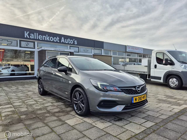 Opel Astra Sports Tourer 1.2 Design&Tech, Camera, Navi, LED. Kenteken: N-283-VT; Merk: Opel; Model: Astra Sports Tourer; APK tot: 19-01-2026; Tellerstand: 79684 KM; Carrosserievorm: Station; Aantal deuren: 5; Brandstofsoort: Benzine; Bouwjaar: 2022; Transmissie: Handgeschakeld 6-versnellingen; Kleur: grijs Metallic; Bekleding: Leder/Stof; Kleur interieur: zwart; Motorinhoud: 1199 cc; Aantal cilinders: 3; Motorcode: LIH; Vermogen: 81 kW / 110pk; Ledig gewicht: 1255 kg; Max. trekgewicht: 1100 kg; Aantal zitplaatsen: 5; Verbruik: 4.5 l/100 km; BTW/Marge: BTW aftrekbaar, de prijs is inclusief BTW; Lengte: 470 cm; Breedte: 181 cm; Hoogte: 1510 cm; Aantal sleutels: 2; Onderhoudshistorie aanwezig: Dealer onderhouden; Motorrijtuigenbelasting: € 190 - 207 per kwartaal; Emissieklasse: Euro 6. Comfort. Boordcomputer; Cruise control; Regensensor. Exterieur. Achterruitwisser; Buitenspiegels elektrisch inklapbaar; Buitenspiegels elektrisch verstelbaar; Buitenspiegels verwarmbaar; Centrale...