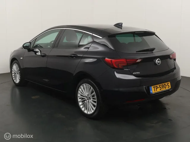 Opel Astra 1.0 Innovation. Kenteken: TP-590-S; Merk: Opel; Model: Astra; APK tot: 28-09-2026; Tellerstand: 134611 KM; Carrosserievorm: Hatchback; Aantal deuren: 5; Brandstofsoort: Benzine; Bouwjaar: 2018; Transmissie: Handgeschakeld; Kleur: blauw; Motorinhoud: 999 cc; Aantal cilinders: 3; Motorcode: B10XFT; Vermogen: 77 kW / 105pk; Ledig gewicht: 1163 kg; Max. trekgewicht: 1220 kg; Aantal zitplaatsen: 5; Verbruik: 4.5 l/100 km; BTW/Marge: Marge, de BTW is niet aftrekbaar; Lengte: 437 cm; Breedte: 181 cm; Hoogte: 1485 cm; Onderhoudshistorie aanwezig: Ja; Motorrijtuigenbelasting: € 172 - 188 per kwartaal; Emissieklasse: Euro 6. Pakket: Innovation+ pakket. Achteruitrijcamera; Comfortstoel(en); Dodehoek detectie; Extra getint glas achter; Geluidsisolerend glas; Kunstlederen/stof bekleding; Parkeer assistent. Comfort. Boordcomputer; Cruise control; Regensensor. Exterieur. Buitenspiegels elektrisch inklapbaar; Buitenspiegels elektrisch verstelbaar; Buitenspiegels verwarmbaar; Centrale...