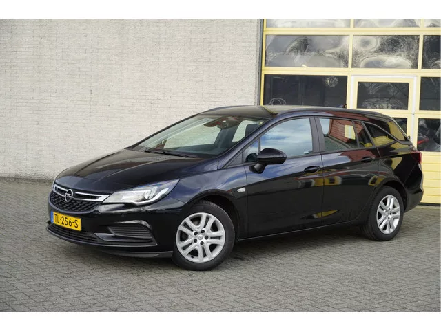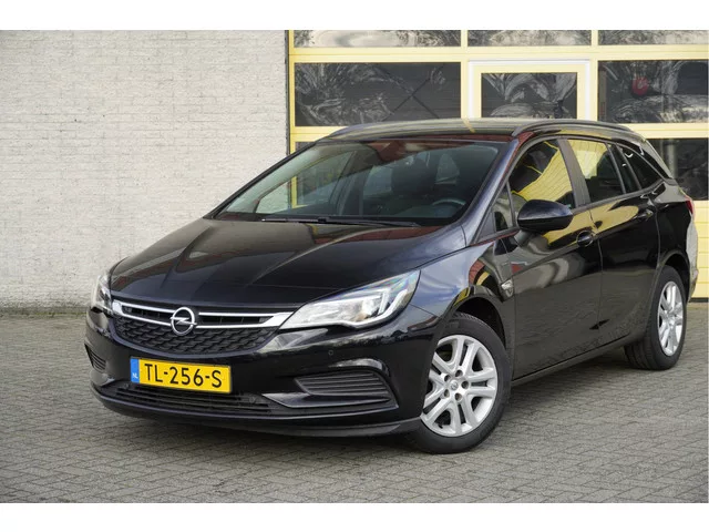Opel Astra Sports Tourer met de zeer luxe aanwezige opties als Led dagrijverlichting | Parkeersensoren | Navigatiesysteem | Airco | Cruise control | Getint glas. 5 versn., Handgeschakeld; Modeljaar: 2017; Voorwielaandrijving; 77 kW; 170 Nm; 3 cilinders; 999cc; Gewicht: 1.178kg; Laadvermogen: 672kg; GVW: 1.850kg; Max. trekgewicht: 1.150kg; LxBxH: 470x181x151cm; Wielbasis: 266cm; 47l tank; 0-100 km/h: 11,7s; Topsnelheid: 195km/u; Interieur: zwart, Stof; 5 zitplaatsen; 4,5 l/100km; 5,4 l/100km; 3,9 l/100km; 103 g/km CO₂; Energielabel A; Euro 6; Dealer onderhouden (onderhoudsboekjes aanwezig); Aantal eigenaren: 4; APK bij aflevering; Wegenbelasting: € 172-€ 188p/kwrt; vanaf € 140 p/m (informeer naar de mogelijkheden en voorwaarden); TL-256-S