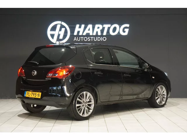 Opel Corsa, Origineel Nederlands, Eerste eigenaar, Apple Carplay, Achteruitrijcamera, Stoelverwarming, Climate control, Cruise control, Lichtmetalen velgen, Stuurwielverwarming, Laneassist, . 6 versn., Handgeschakeld; Modeljaar: 2015; 66 kW; 170 Nm; 3 cilinders; 999cc; Gewicht: 1.099kg; Laadvermogen: 581kg; GVW: 1.680kg; Max. trekgewicht: 1.200kg; LxB: 402x175cm; Wielbasis: 251cm; 45l tank; 0-100 km/h: 11,9s; Topsnelheid: 180km/u; Stof; 5 zitplaatsen; 4,6 l/100km; 5,6 l/100km; 4,1 l/100km; 107 g/km CO₂; Fijnstofuitstoot: 3 mg/km; Energielabel B; Euro 6; Wegenbelasting: € 140-€ 154p/kwrt; Beschikbare afleverpakketten: Basispakket (zonder meerprijs); Servicepakket 1 (€ 495); Servicepakket 2 (€ 695); PL-795-N