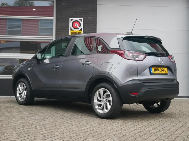 Opel Crossland X 1.2 Turbo Innovation 1e eigenaar| Dealer onderhouden. Kenteken: JHB-39-L; Merk: Opel; Model: Crossland X; Tellerstand: 26010 KM; Carrosserievorm: SUV; Aantal deuren: 5; Brandstofsoort: Benzine; Bouwjaar: 2019; Transmissie: Automaat; Kleur: grijs Metallic; Bekleding: Stof; Kleur interieur: zwart; Motorinhoud: 1199 cc; Aantal cilinders: 3; Motorcode: HN05; Vermogen: 81 kW / 110pk; Ledig gewicht: 1178 kg; Max. trekgewicht: 840 kg; Aantal zitplaatsen: 5; Verbruik: 5.6 l/100 km; BTW/Marge: Marge, de BTW is niet aftrekbaar; Lengte: 421 cm; Breedte: 177 cm; Hoogte: 1605 cm; Aantal sleutels: 2; Onderhoudshistorie aanwezig: Ja; Motorrijtuigenbelasting: € 172 - 188 per kwartaal; Emissieklasse: Euro 6. Comfort. Cruise control; Regensensor. Exterieur. Achterspoiler; Buitenspiegels elektrisch verstel- en verwarmbaar; Chroom delen exterieur; Dakrails; Dimlichten automatisch; Keyless entry; LED dagrijverlichting; Lichtmetalen velgen 16"; Mistlampen voor; Parkeersensor achter...