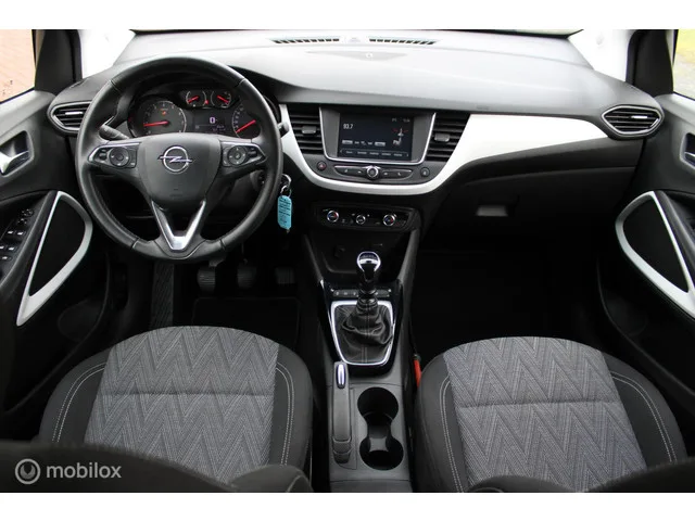 Opel Crossland X 1.2 Turbo Edition 2020, Nieuwe Distributieriem, 4 Nieuwe banden, App connect, Pdc voor/achter + camera, Full Led, Cruise, Clima, 16 inch Lmv. Kenteken: K-926-LG; Merk: Opel; Model: Crossland X; APK tot: 06-01-2027; Tellerstand: 70469 KM; Carrosserievorm: SUV; Aantal deuren: 5; Brandstofsoort: Benzine; Bouwjaar: 2021; Transmissie: Handgeschakeld; Kleur: zwart Metallic; Bekleding: Stof; Kleur interieur: zwart; Motorinhoud: 1199 cc; Aantal cilinders: 3; Motorcode: EB2ADT (HN05); Vermogen: 81 kW / 110pk; Ledig gewicht: 1154 kg; Max. trekgewicht: 840 kg; Aantal zitplaatsen: 5; Verbruik: 4.8 l/100 km; BTW/Marge: BTW aftrekbaar, de prijs is inclusief BTW; Lengte: 421 cm; Breedte: 177 cm; Hoogte: 1605 cm; Aantal sleutels: 2; Onderhoudshistorie aanwezig: Ja; Motorrijtuigenbelasting: € 172 - 188 per kwartaal; Emissieklasse: Euro 6; Velgmaat: 16 inch. Comfort. Cruise control. Exterieur. Achterruitwisser; Achterspoiler; Achteruitrijcamera; Andere dakkleur; Buitenspiegel rechts...