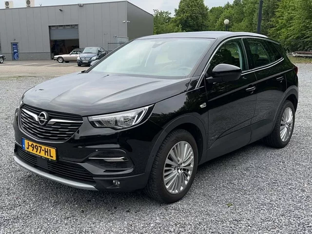 J-997-HL | Mooie Opel Grandland X. In de metallic zwart kleur. Uitgerust met o.a. 17 inch velgen, donker getinte achterste zijruiten en achterruit, electronic Climate Control, Dual zone, mistlampen voor, Navi 5.0 IntelliLink pakket, winterpakket. Inruil en/of financiering mogelijk. Ook de zakelijke rijder vindt bij Koolen Auto's een passende aanbieding voor Financial Lease of Operational Lease. Voor meer informatie, een vrijblijvende offerte of het maken van een afspraak kunt u ons bereiken via info@koolen-autos.nl of telefonisch op 046-4861451. 8 versn., Automaat; 96 kW; 3 cilinders; 1.199cc; Gewicht: 1.393kg; Laadvermogen: 560kg; GVW: 1.953kg; Max. trekgewicht: 1.200kg; LxBxH: 448x186x161cm; Wielbasis: 268cm; Interieur: zwart, Stoffen bekleding zwart, Stof; 5 zitplaatsen; 5,2 l/100km; 6 l/100km; 4,8 l/100km; 119 g/km CO₂; Energielabel B; Euro 6; Onderhoudsboekjes aanwezig; 1 sleutel; Wegenbelasting: € 216-€ 235p/kwrt