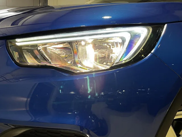 Glazen panoramadak met elektrisch bedienbare zonwering, LED koplampen, lichtmetalen velgen 17", Topaz Blue Trendlak, buitenspiegels elektrisch inklapbaar, buitenspiegels elektrisch verstel- en verwarmbaar, buitenspiegels in carrosseriekleur, buitenspiegels met verlichting, chroom delen exterieur, dimlichten automatisch, elektrisch bedienbare achterklep met sensorsturing, extra getint glas, keyless entry, LED achterlichten, LED dagrijverlichting, regensensor