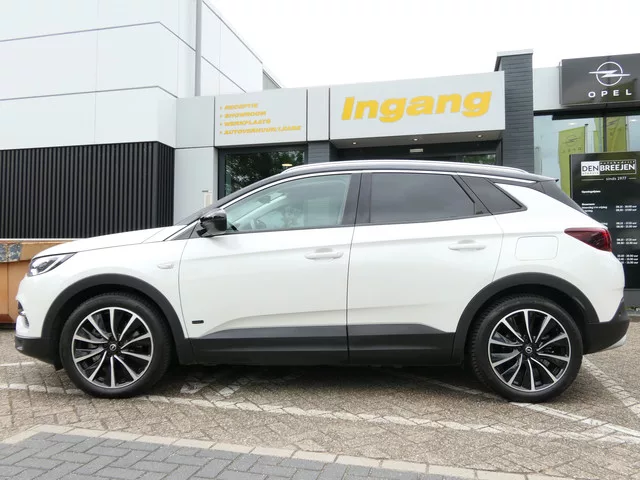 Verkoopprijs is rijklaar inclusief onderhoudsbeurt volgens fabrieksschema, uitgebreide afleveringscontrole, minimaal 12 maanden APK-keuring, 12 maanden BOVAG-garantie, BOVAG-omruilgarantie (binnen 14 dagen of 750 km), 12 maanden pechhulp, poetsen en schoonmaken, 20 liter brandstof en veiligheidspakket. Zeer complete Opel Grandland X Hybrid, voorzien van mooie fabrieksopties! Slechts 43.000 km! 8 versn., Automaat; Modelreeks: jul. 2019 - jul. 2021; 4WD; 221 kW; 300 Nm; 4 cilinders; 1.598cc; Gewicht: 1.775kg; Laadvermogen: 575kg; GVW: 2.350kg; Max. trekgewicht: 1.250kg; LxBxH: 448x186x163cm; Wielbasis: 268cm; Accu: 13kWh, Type lithium-ion; Accu laden: Type 2, 1-fase, 6.6 kW; Accu snelladen: nee; 43l tank; 0-100 km/h: 6,1s; Topsnelheid: 235km/u; Interieurkleur: Antraciet; 5 zitplaatsen; 1,3 l/100km; 29 kWh/100km; 30 g/km CO₂; Energielabel A; Euro 6; Dealer onderhouden (onderhoudsboekjes aanwezig); Eerste eigenaar; APK: tot sep. 2026; 2 sleutels (2 handzenders); BOVAG Garantie (12...