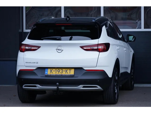 Opel Grandland X 1.2 Turbo Business Elegance, aut. leder, trekh. Kenteken: K-193-KT; Merk: Opel; Model: Grandland X; APK tot: 14-01-2027; Tellerstand: 70853 KM; Carrosserievorm: SUV; Aantal deuren: 5; Brandstofsoort: Benzine; Bouwjaar: 2021; Transmissie: Automaat; Kleur: wit; Bekleding: Leder; Motorinhoud: 1199 cc; Aantal cilinders: 3; Motorcode: HN05; Vermogen: 96 kW / 131pk; Ledig gewicht: 1295 kg; Max. trekgewicht: 1300 kg; Aantal zitplaatsen: 5; Verbruik: 5.2 l/100 km; BTW/Marge: BTW aftrekbaar, de prijs is inclusief BTW; Lengte: 448 cm; Breedte: 186 cm; Aantal sleutels: 2; Onderhoudshistorie aanwezig: Dealer onderhouden; Motorrijtuigenbelasting: € 199 - 217 per kwartaal; Emissieklasse: Euro 6. Pakket: Leder pakket. Elektrisch verstelbare bestuurdersstoel; Lederen bekleding; Stoel ventilatie voor; Stuur verwarmd; Voorstoelen verwarmd. Comfort. Boordcomputer; Cruise control; Regensensor. Exterieur. Achterruitwisser; Andere dakkleur; Buitenspiegels elektrisch inklapbaar...