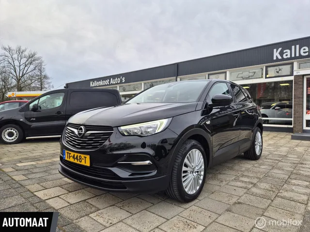Opel Grandland X 1.2 Turbo Online Edition, D-Riem vervangen! Kenteken: TF-448-T; Merk: Opel; Model: Grandland X; APK tot: 23-07-2026; Tellerstand: 100290 KM; Carrosserievorm: SUV; Aantal deuren: 5; Brandstofsoort: Benzine; Bouwjaar: 2018; Transmissie: Automaat; Kleur: zwart Metallic; Bekleding: Stof; Kleur interieur: zwart; Motorinhoud: 1199 cc; Aantal cilinders: 3; Motorcode: HN02; Vermogen: 96 kW / 131pk; Ledig gewicht: 1273 kg; Max. trekgewicht: 1200 kg; Aantal zitplaatsen: 5; Verbruik: 5.2 l/100 km; BTW/Marge: Marge, de BTW is niet aftrekbaar; Lengte: 448 cm; Breedte: 186 cm; Aantal sleutels: 2; Onderhoudshistorie aanwezig: Ja; Motorrijtuigenbelasting: € 199 - 217 per kwartaal; Emissieklasse: Euro 6. Comfort. Boordcomputer; Cruise control. Exterieur. Achterruitwisser; Buitenspiegels elektrisch inklapbaar; Buitenspiegels elektrisch verstel- en verwarmbaar; Buitenspiegels in carrosseriekleur; Centrale vergrendeling met afstandsbediening; Dimlichten automatisch; Extra getint glas...
