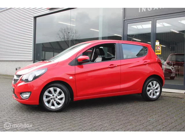 Opel KARL 1.0 ecoFLEX Innovation/Tel/Pdc/Stoel+Stuurverw/. Kenteken: HBH-09-N; Merk: Opel; Model: KARL; Tellerstand: 38936 KM; Carrosserievorm: Hatchback; Aantal deuren: 5; Brandstofsoort: Benzine; Bouwjaar: 2016; Transmissie: Automaat; Kleur: rood; Bekleding: Leder/Stof; Kleur interieur: antraciet; Motorinhoud: 999 cc; Aantal cilinders: 3; Vermogen: 55 kW / 75pk; Ledig gewicht: 839 kg; Aantal zitplaatsen: 5; Verbruik: 4.3 l/100 km; BTW/Marge: Marge, de BTW is niet aftrekbaar; Aantal sleutels: 2; Onderhoudshistorie aanwezig: Ja; Motorrijtuigenbelasting: € 67 - 73 per kwartaal. Pakket: Innovation+ pakket. Elektrische ramen achter; LED dagrijverlichting; Parkeersensor achter; Rijstrooksensor; Stuur verwarmd; Voorstoelen verwarmd. Comfort. Boordcomputer; Cruise control. Exterieur. All Season banden; Buitenspiegels elektrisch verstelbaar; Buitenspiegels in carrosseriekleur; Buitenspiegels verwarmbaar; Centrale vergrendeling met afstandsbediening; Dakspoiler; Lichtmetalen velgen 15"...