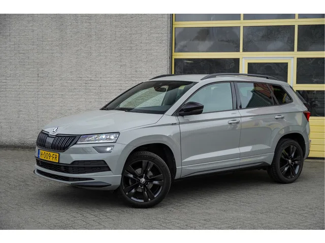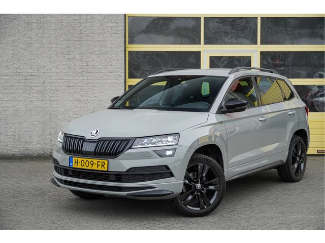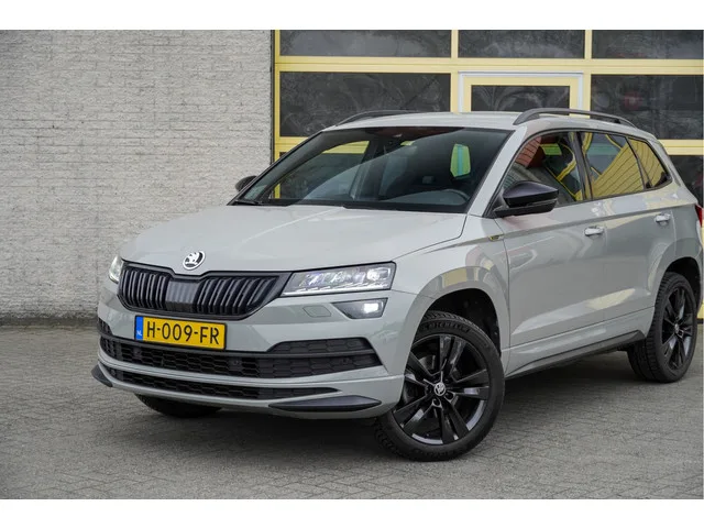 ŠKODA Karoq Automaat met de zeer luxe aanwezige opties als Lichtmetalen velgen 18" | Led dagrijverlichting | Led koplampen | Led achterlichten | Led mistlampen | Parkeersensoren | Keyless entry | Verwarmde voorruit | Achteruitrijcamera | App-Connect | Navigatiesysteem | Virtual cockpit | Dashboard verlichting | Climate control | Cruise control | Sportstoelen | Sportstuur | Zwarte hemel | Verwarmde voorstoelen | Extra getint glas. 7 versn., Automaat; Modeljaar: 2019; Voorwielaandrijving; 110 kW; 250 Nm; 4 cilinders; 1.498cc; Gewicht: 1.295kg; Laadvermogen: 586kg; GVW: 1.881kg; Max. trekgewicht: 1.500kg; LxBxH: 450x184x162cm; Wielbasis: 264cm; 50l tank; 0-100 km/h: 9,0s; Topsnelheid: 203km/u; Interieur: zwart, Stof; 5 zitplaatsen; 5,4 l/100km; 6,6 l/100km; 4,7 l/100km; 154 g/km CO₂; Energielabel C; Euro 6; Dealer onderhouden (onderhoudsboekjes aanwezig); Aantal eigenaren: 2; APK bij aflevering; Wegenbelasting: € 199-€ 217p/kwrt; vanaf € 327 p/m (informeer naar de mogelijkheden en...