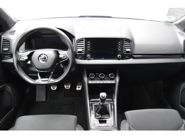 Rijklaar geprijsd incl. 12 maanden BOVAG garantie en minimaal 12 maanden APK, zonder bijkomende kosten. Zeer stoere en uiterst luxe uitgevoerde Skoda Karoq Sportline. Betreft een origineel Nederlands geleverde Karoq die rechtstreeks afkomstig is vanaf de eerste eigenaar en ten alle tijden keurig onderhouden is en volledig beschikbaar is! De stoere uitstraling komt mede door de Sportline uitvoering. Typerend voor deze uitvoering zijn de sportstoelen, andere bumpers rond om, 19'' velgen en zwarte hemelbekleding. Buiten de luxe standaard uitrusting is deze Karoq nog voorzien van o.a. de onderstaande fabrieksopties: Trekhaak. KA1 : Achteruitrijcamera. PT1 : Bluetooth telefoonvoorbereiding met Phonebox met draadloos opladen. PHB : Climatronic, elektronische airconditioning met 2 klimaatzones. QV3 : DAB+ digitale radio ontvangst. PKH : Driver Activity Assistant, vermoeidheid waarschuwingssysteem. PK8 : Full LED koplampen. PT0 : Handsfree carkitvoorbereiding. PJ5 : Lichtmetalen velgen 19"...
