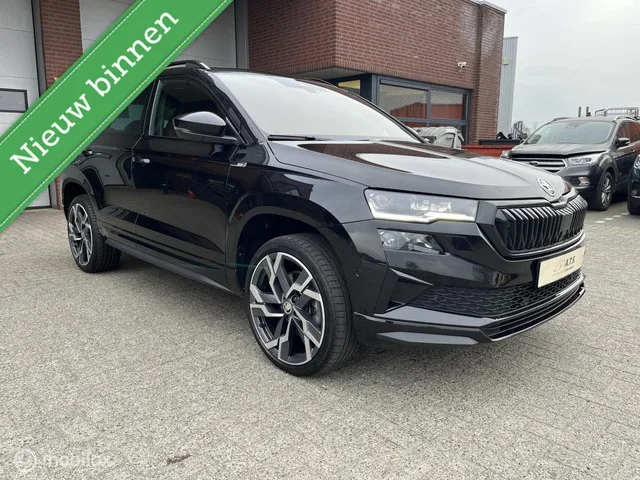 Skoda Karoq 1.5 TSI ACT Sportline LED*TREKHAAK*ACC*CAMERA*. Merk: Skoda; Model: Karoq; APK tot: 12-01-2027; Tellerstand: 47800 KM; Carrosserievorm: SUV; Aantal deuren: 5; Brandstofsoort: Benzine; Bouwjaar: 2023; Transmissie: Automaat; Kleur: zwart; Motorinhoud: 1498 cc; Aantal cilinders: 4; Motorcode: DXD; Vermogen: 110 kW / 150pk; Ledig gewicht: 1307 kg; Max. trekgewicht: 1500 kg; Aantal zitplaatsen: 5; Verbruik: 6.4 l/100 km; BTW/Marge: Marge, de BTW is niet aftrekbaar; Lengte: 438 cm; Breedte: 184 cm; Motorrijtuigenbelasting: € 199 - 217 per kwartaal; Emissieklasse: Euro 6. Comfort. Boordcomputer; Cruise control; Regensensor. Exterieur. Achterruitwisser; Achterspoiler; Buitenspiegels elektrisch inklapbaar; Buitenspiegels elektrisch verstel- en verwarmbaar; Centrale vergrendeling met afstandsbediening; Dakrails; Dimlichten automatisch; Elektrisch glazen panorama-dak; Extra getint glas achter; Getint glas; Glazen schuifdak; Koplampen adaptief; Koplampreiniging; LED achterlichten...