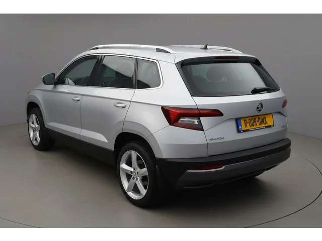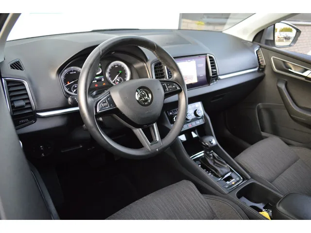 Stoere Skoda Karoq van bouwjaar 2018. O.a. voorzien van; climate control, adaptieve cruise control, elektrische ramen, elektrisch verstel & inklapbare buitenspiegels, stoelverwarming, navigatiesysteem, Carplay, keyless entry, keyless go, ledverlichting, trekhaak en lichtmetalen velgen. Wordt geleverd inclusief nieuwe APK. Vanzelfsprekend worden reservesleutel en onderhoudsboekjes meegeleverd. Meer informatie: Transmissie: 7 versnellingen, Automaat; Voorwielaandrijving; Interieur: Donkergrijs, Stof; Gemiddeld brandstofverbruik: 5,5 l/100km (1 op 18,2); vanaf € 345 p/m (financial lease, 72 maanden); informeer naar de mogelijkheden en voorwaarden