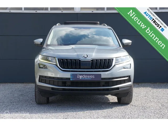 Keurige Skoda Kodiaq 1.5 TSI Business Edition Plus is in de schitterende kleur Quartz Grey Metallic. Skoda Kodiaq 1.5 TSI DSG Business Edition + Nav Apple/Android. Algemene gegevens. Kenteken: ZP-399-J. Tellerstand: 162518 KM. Carrosserievorm: SUV. Aantal deuren: 5. Brandstofsoort: Benzine. Bouwjaar: 2019. Transmissie: Automaat 7. Kleur: Grijs Metallic. Kleurnaam: Business Grey Metallic. Interieur: Zwart. Bekleding: Leder/Stof. Interieurnaam: Busines edition. Onderhoudshistorie aanwezig: Ja. Technische gegevens. Motorinhoud: 1498 cc. Aantal cilinders: 4. Vermogen: 110 kW / 150pk. Koppel: 250Nm. Ledig gewicht: 1482 kg. Max. massa voertuig: 2207 kg. Max. trekgewicht: 1800 kg. Emissieklasse: Euro 6. Acceleratie (0-100 km/h): 9.8 seconden. Topsnelheid: 198 km/h. Gemiddeld verbruik (gecombineerd): 5.7 l/100km. Functionaliteit. Lengte (cm): 470 cm. Breedte (cm): 188 cm. Financiële gegevens. Motorrijtuigenbelasting: € 253 - 276 per kwartaal. Oorspronkelijke cataloguswaarde: € 42710 (incl....