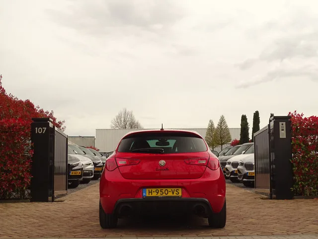Voor de purist... zet je schrap. Door ons geimporteerd en reeds door 2 liefhebbers uit onze klantenkring gekoesterd. De auto hebben wij met.... schrik niet 6000 km geimporteerd van de 1e eigenaar. Daarna aan alfamaniak verkocht die er een Ragazzon en de fantastische 19 inch Prodive velgen op heeft gezet. Kortom een uniek exemplaar met een dito historie. De distributieriem is net vervangen en hij is in een perfecte staat. De goed geïnformeerde Giulietta-kenner weet dat dit het laatste productiejaar is geweest van de "echt" Rosso Competizione kleur die dus ook op de gelijknamige Alfa Romeo 8C zit. Wij hebben de frontgrille vervangen voor het 2016 MY. Het nieuwe model heeft tevens een nieuwe naam en badge gekregen... jammer dat het Veloce is geworden want hiermee verdween ook de klaver op de voorschermen... en dat is jammer. De Ragazzon en de 19 inch velgen, de schaalstoelen en de kleur zijn wat ons betreft wel de pronkstukken van deze Giulietta. Als deze ook nog eens zo goed rijd...