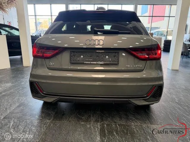 Audi A1 Sportback 30 TFSI S edition. Merk: Audi; Model: A1 Sportback; Tellerstand: 21000 KM; Carrosserievorm: Hatchback; Aantal deuren: 5; Brandstofsoort: Benzine; Bouwjaar: 2024; Transmissie: Automaat; Motorinhoud: 999 cc; Aantal cilinders: 3; Vermogen: 81 kW / 110pk; Ledig gewicht: 1105 kg; Aantal zitplaatsen: 5; Verbruik: 5.7 l/100 km; BTW/Marge: Marge, de BTW is niet aftrekbaar. Pakket: Dynamic pakket. Adaptief demping systeem. Comfort. Cruise control; Regensensor. Exterieur. Buitenspiegels elektrisch verstelbaar; Buitenspiegels in carrosseriekleur; Buitenspiegels verwarmbaar; Centrale vergrendeling met afstandsbediening; DODEHOEKASSISTENT; Dakspoiler; Dimlichten automatisch; Dubbele usb aansluiting voor en achter; LANEASSISTENT RIJSTROOK; LED achterlichten; LED koplampen; Lichtmetalen velgen 17"; Lichtmetalen velgen 5-spaaks 17"; Parkeersensor achter; Sportonderstel; Warmtewerend glas; Warmtewerende voorruit. Infotainment. DAB; Multimedia-voorbereiding; Radio; Smartphone...