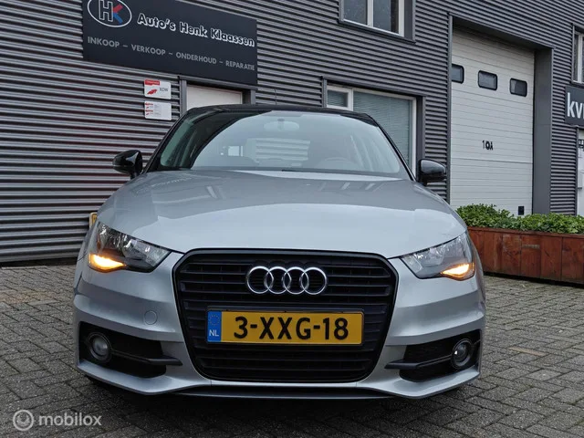 Audi A1 Sportback 5-deurs 1.2TFSi Admired Navigatie Led LM17. Kenteken: 3-XXG-18; Merk: Audi; Model: A1 Sportback; APK tot: 14-11-2026; Tellerstand: 104388 KM; Carrosserievorm: Hatchback; Aantal deuren: 5; Brandstofsoort: Benzine; Bouwjaar: 2014; Transmissie: Handgeschakeld 5; Kleur: grijs Metallic; Kleurnaam: Smokegrey black roof; Motorinhoud: 1197 cc; Aantal cilinders: 4; Motorcode: CBZ; Vermogen: 63 kW / 86pk; Ledig gewicht: 1040 kg; Max. trekgewicht: 1000 kg; Aantal zitplaatsen: 4; Verbruik: 5 l/100 km; BTW/Marge: Marge, de BTW is niet aftrekbaar; Aantal sleutels: 2; Onderhoudshistorie aanwezig: Dealer onderhouden; Motorrijtuigenbelasting: € 119 - 129 per kwartaal; Emissieklasse: Euro 5. Pakket: Navigatie pakket 2. Autotelefoon voorbereiding; Multimedia-voorbereiding; Navigatiesysteem full map; Stuur multifunctioneel. Comfort. Cruise control. Exterieur. Achterruitwisser; Achterspoiler; Buitenspiegels elektrisch verstelbaar; Centrale vergrendeling met afstandsbediening; Getint...