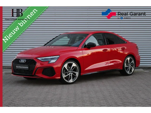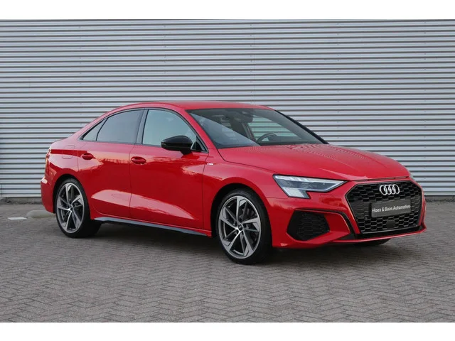 Audi A3 Limousine 35 TFSI S-Line/Headup/Matrix/Virtual/Camera. Kenteken: L-301-JP; Merk: Audi; Model: A3 Limousine; APK tot: 26-03-2028; Tellerstand: 41797 KM; Carrosserievorm: Sedan; Aantal deuren: 4; Brandstofsoort: Benzine; Bouwjaar: 2020; Transmissie: Automaat; Kleur: rood Metallic; Kleurnaam: Tango Red Metallic; Bekleding: Leder/Stof; Kleur interieur: zwart; Interieurnaam: Soul(black); Motorinhoud: 1498 cc; Aantal cilinders: 4; Motorcode: DFY; Vermogen: 110 kW / 150pk; Ledig gewicht: 1295 kg; Max. trekgewicht: 1500 kg; Aantal zitplaatsen: 5; Verbruik: 5.6 l/100 km; BTW/Marge: Marge, de BTW is niet aftrekbaar; Breedte: 182 cm; Aantal sleutels: 2; Onderhoudshistorie aanwezig: Ja; Motorrijtuigenbelasting: € 199 - 217 per kwartaal; Emissieklasse: Euro 6. Pakket: LED lichtpakket. Koplampreiniging; Matrix LED koplampen. Comfort. Cruise control; Regensensor. Exterieur. Aluminium delen exterieur; Auto staat op winterbanden; Buitenspiegels elektrisch verstel- en verwarmbaar...